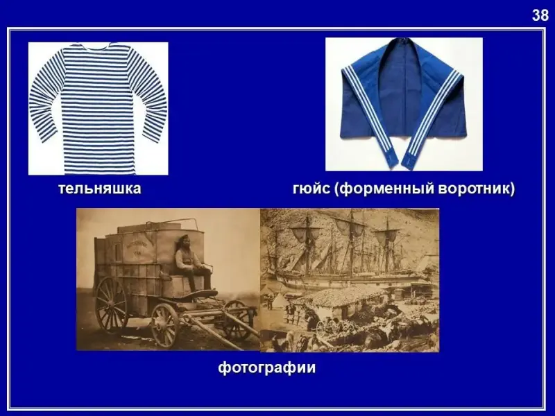 1. Она появилась в ХVII веке во Франции. Её носят на флоте. Синие и белые поперечные полосы на ней соответствуют цветам русского военно-морского Андреевского флага. (Тельняшка).