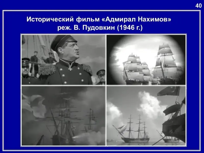 - фрагменты худ. фильма «Адмирал Нахимов» реж. В.Пудовкин (1946 г.);