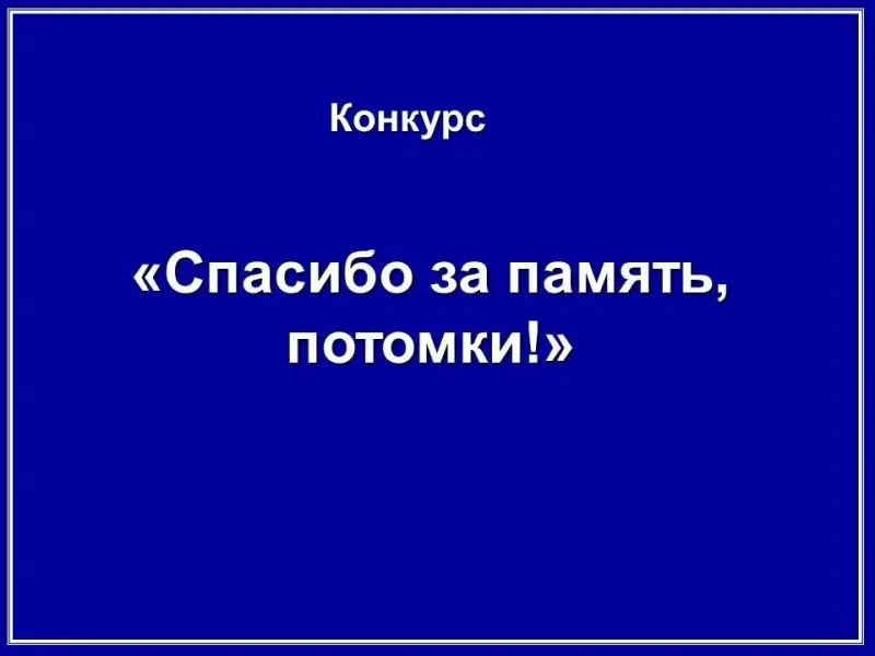 - Конкурс «Спасибо за память, потомки!».