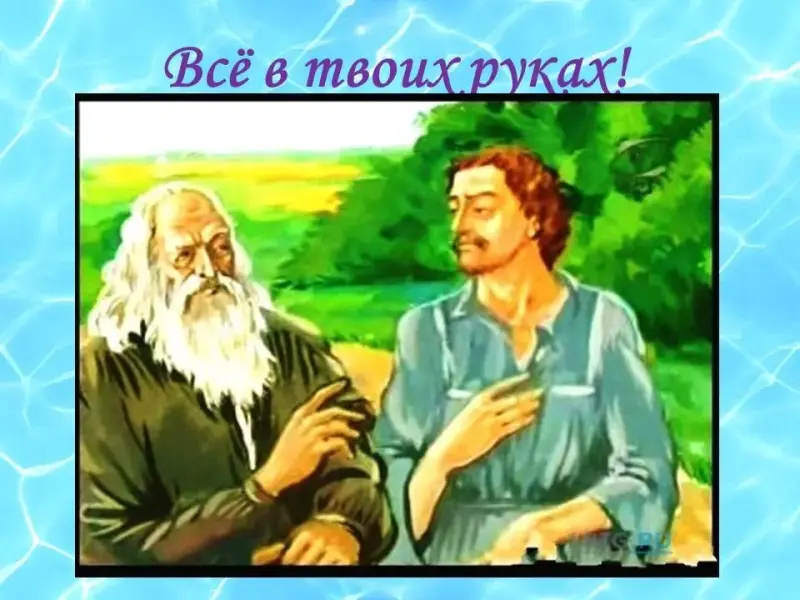 «Жил мудрец, который знал все. Один человек захотел доказать, что мудрец знает не все. Зажав в ладонях бабочку, он спросил: «Скажи, мудрец, какая бабочка у меня в руках: мертвая или живая?» А сам думает: «Скажет живая - я ее умертвлю, скажет мертвая - выпущу». Мудрец, подумав, ответил: «Все в твоих руках».