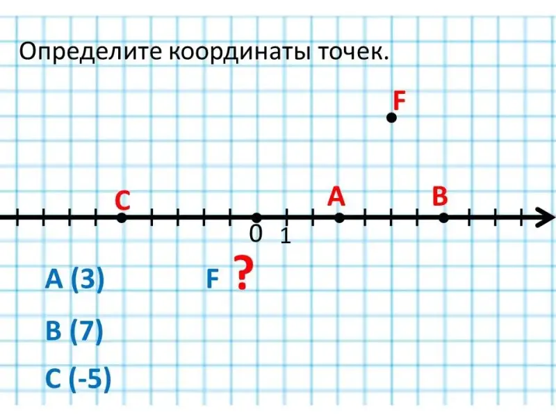 - Почему не можете назвать координаты точки F? (она не находится на координатном луче)