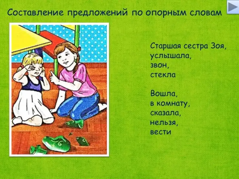 | Составление предложений по серии сюжетных картин «Ваза» по опорным словам.