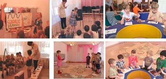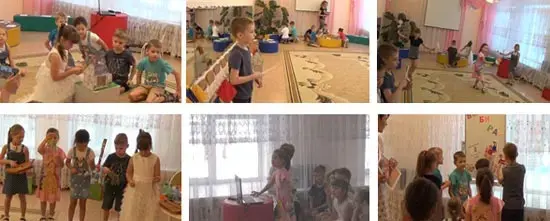 Таким образом, на протяжении занятия у детей есть возможность с помощью разных видов деятельности «рассмотреть» и «передать» через инструменты, пластику рук, элементарных движений тела и рисованию музыки характер и выразительные особенности произведения. Порядок импровизаций определяет выбор детей.