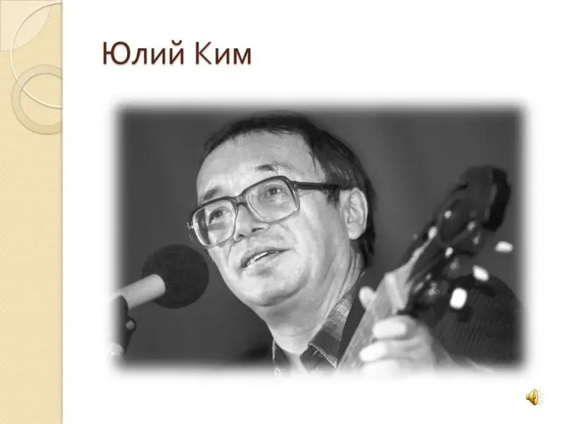 Краткие сообщения учащихся о Вертинском, Визборе, Киме, Окуджаве, Высоцком, Макаревиче, Гребенщикове, Талькове, Розенбауме (выступление идёт в сопровождении фонограммы, звук по необходимости убирается).