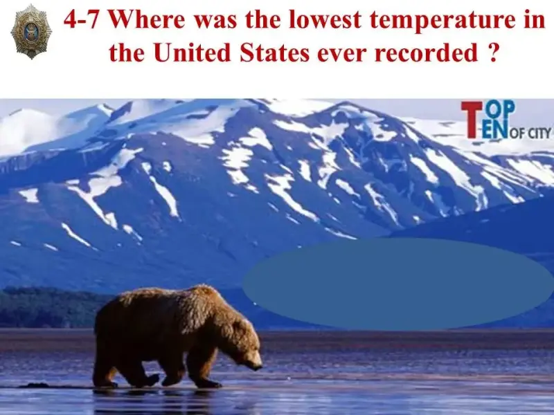 - Where was the lowest temperature in the United States ever recorded? (1971, in Prospect Creek, Alaska)