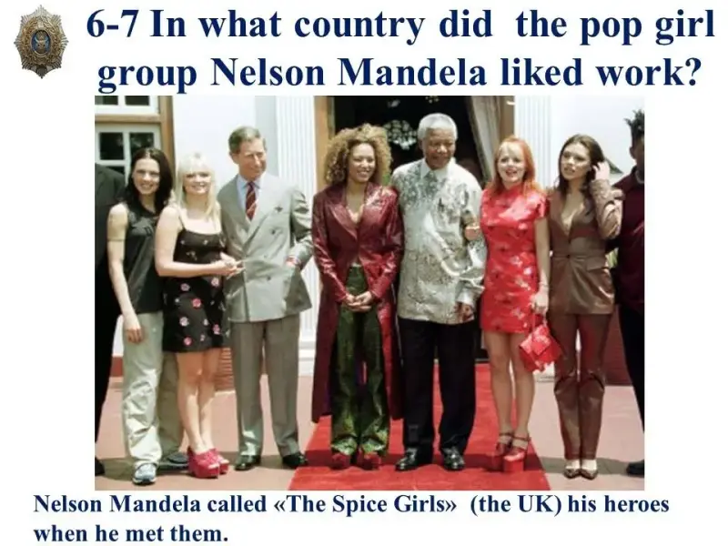 - In what country did the pop girl group whom Nelson Mandela called his heroes when he met them work? (The Spice Girls, the UK)