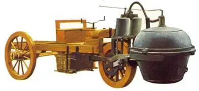И в 1770 г. во Франции был построен первый паровой автомобиль.