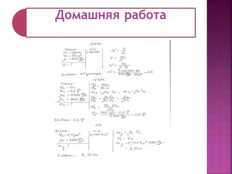 Решение задач на вычисление массы и объема по плотности