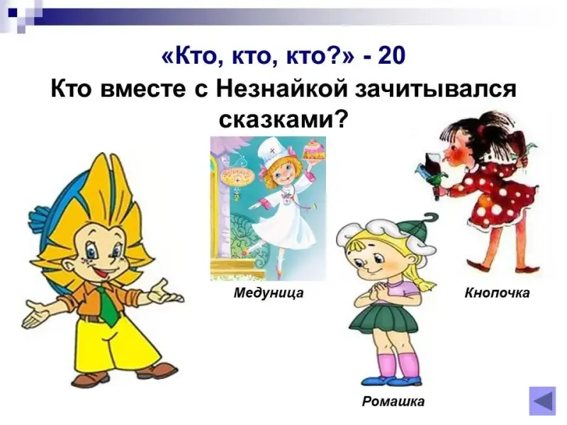 20 баллов. Кто вместе с Незнайкой зачитывался сказками? Кнопочка