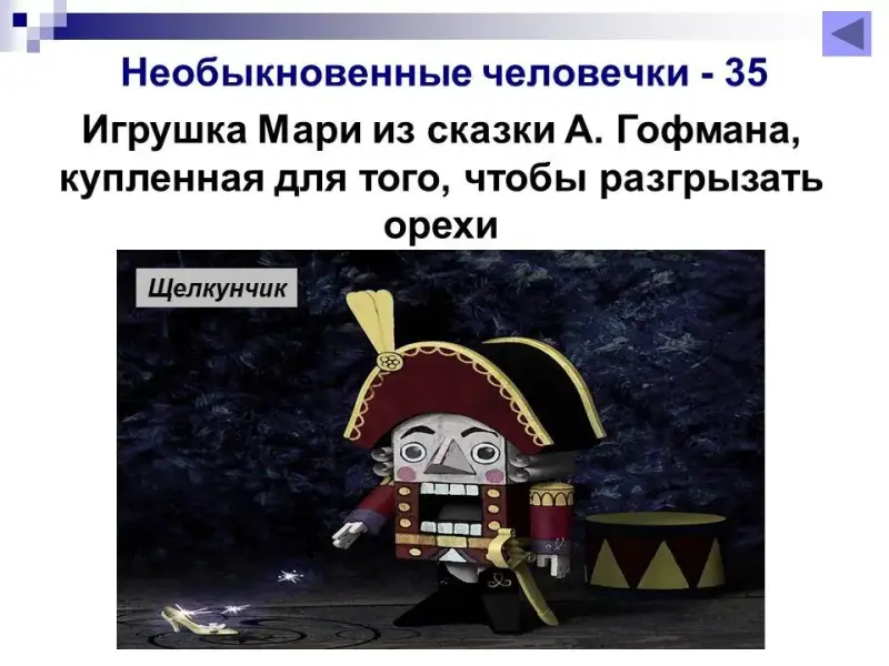 35 баллов. Игрушка Мари из сказки А.Гофмана, купленная для того, чтобы разгрызать орехи? Щелкунчик