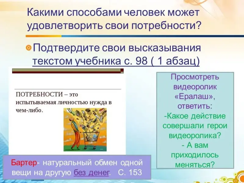 С самых древних времён в обществе существовал бартер - натуральный обмен одной вещи на другую. Бартер имеет серьёзные недостатки: он неудобен, занимает много времени на поиск варианта обмена, не всегда равноценный и справедливый.
