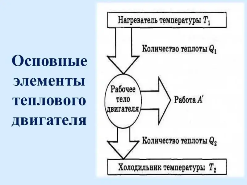 - нагреватель, рабочее тело, холодильник);