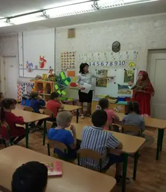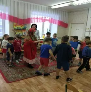 Воспитатель: Ребята, сегодня я хочу вас пригласить в необычное путешествие. Путешествие в сказку. А кто лучше всех умеет их рассказывать? (…) Конечно же, бабушка. Вот послушайте: «Жила- была бабушка, добрая, приветливая. Звали её Бабушкой-рассказушкой. Умела она утешить, и рассмешить, сказку рассказать…». Но что это? Я, кажется, слышу её голос.