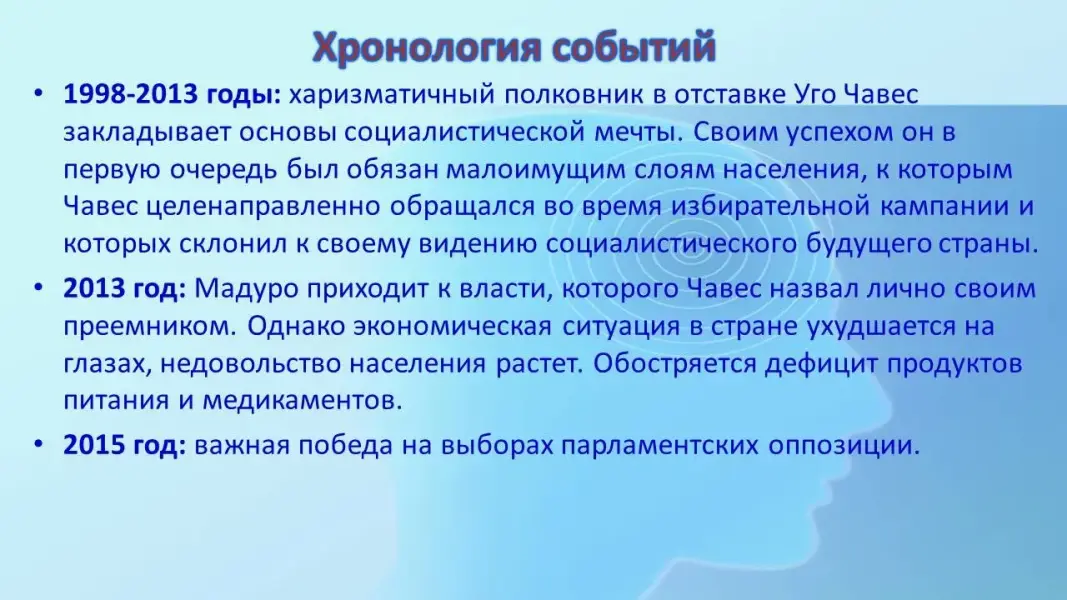 Данная работа представляет собой разработку урока по теме «Латинская Америка. Политический кризис в Венесуэле» в 11-х классах. Форма проведения: урок-исследование. Он позволяет решить следующие задачи.