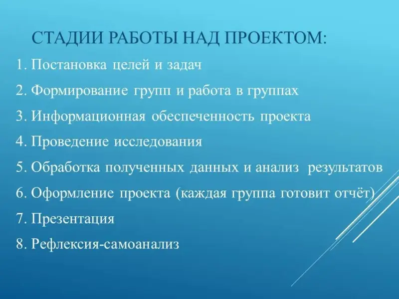 - Систематизирование материала таким образом, чтобы он оправдывал цель проекта.
