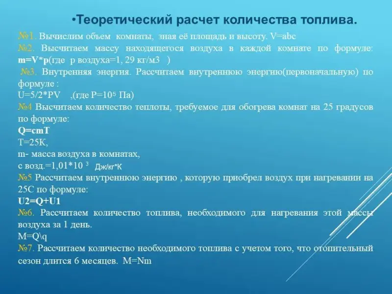 1. Рассчитать какое количество теплоты необходимо для отопления: