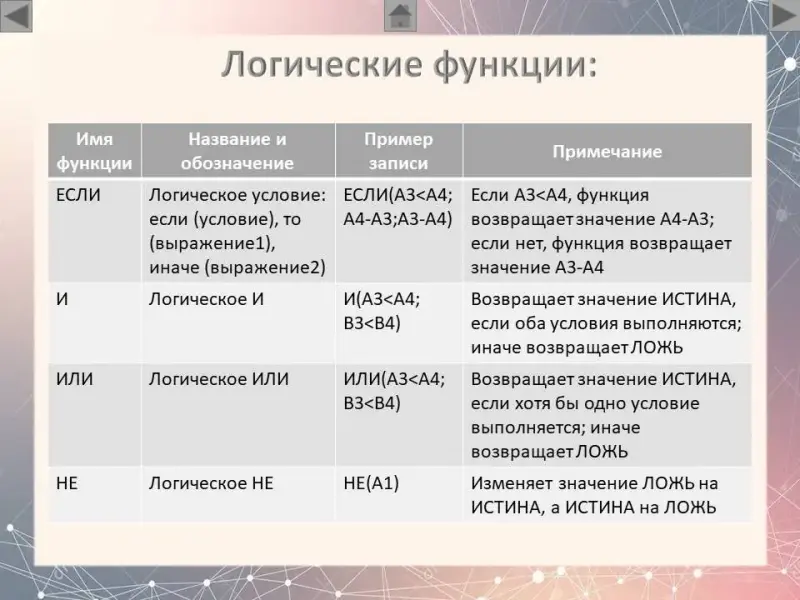 - Функция ЕСЛИ - для проверки условия, возвращает одно значение, если оно выполняется, и другое значение, если не выполняется;