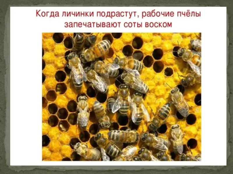 На этих шестиугольниках пчелы выращивают из воска ячейки. В них и откладывают мед, а за тем снова покрывают сплошным прямоугольником из воска.