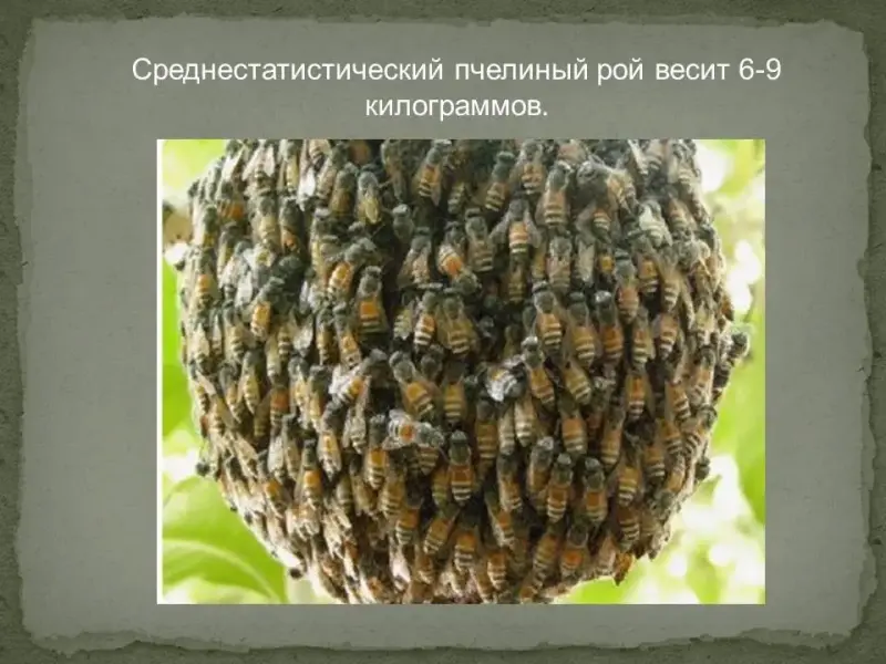 Среднестатистический пчелиный рой весит 6-9 килограммов.