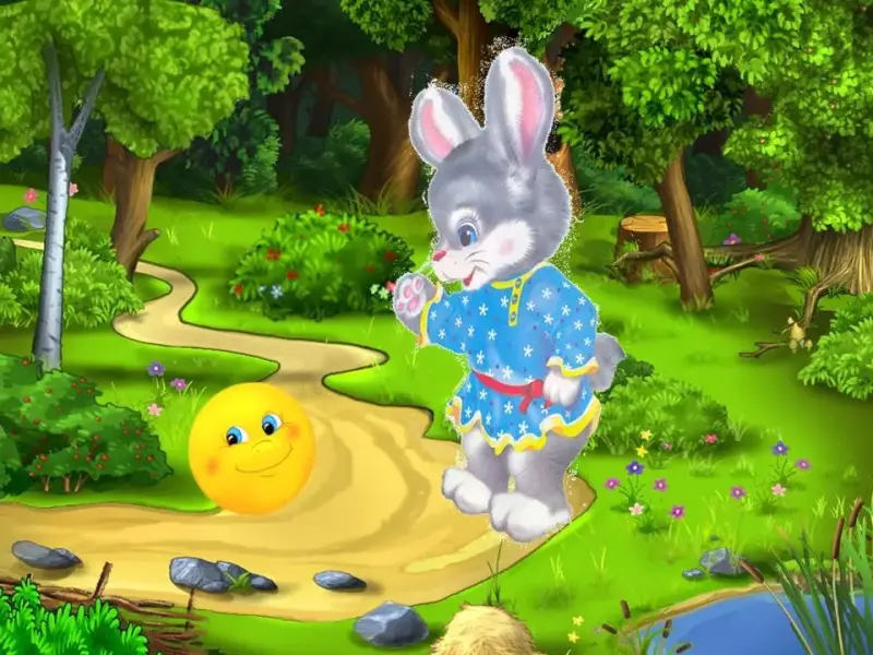 Покатился колобок дальше. А навстречу ему, угадайте, кто бежит? (Слайд №5)