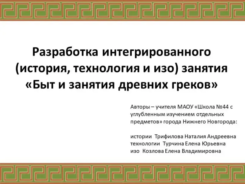 Интегрированное (история, технология и ИЗО) занятие «Быт и занятия древних греков»