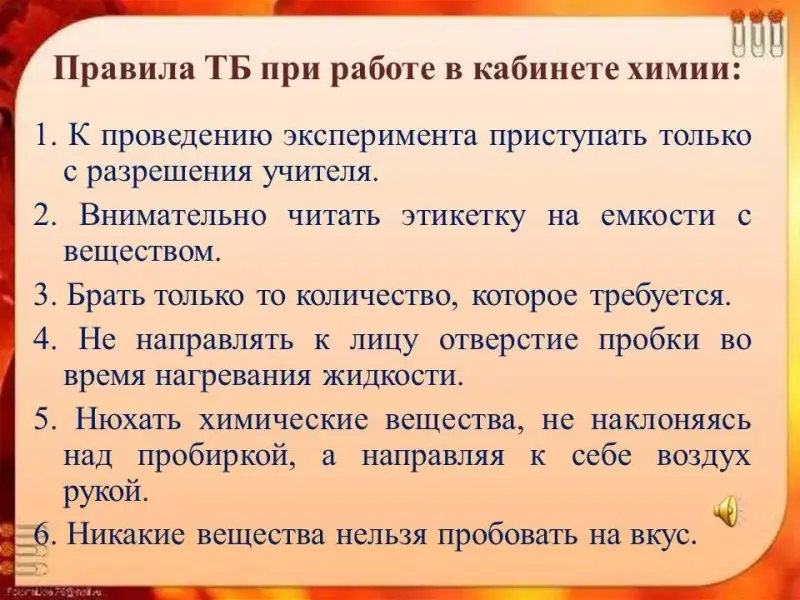 Правила ТБ при работе в кабинете химии