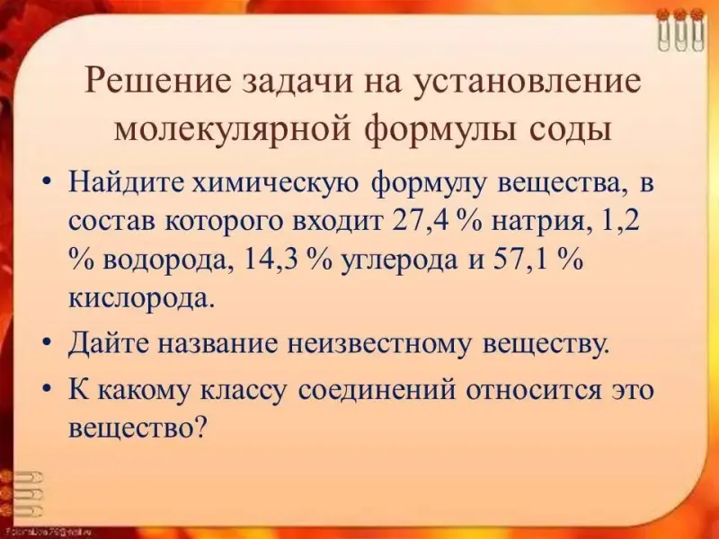 Решение задачи на установление молекулярной формулы соды.