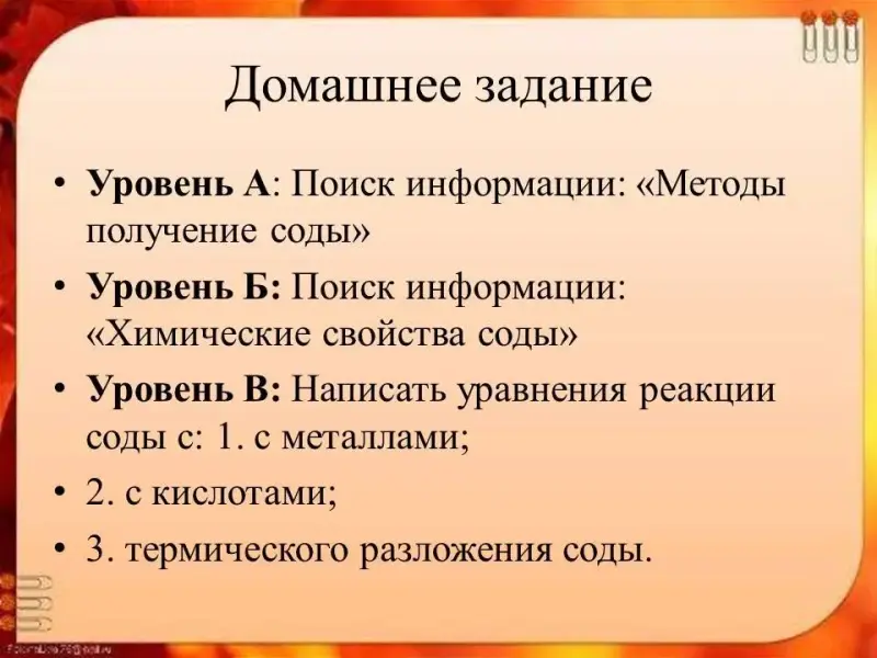 Уровень Б: Поиск информации: «Химические свойства соды».