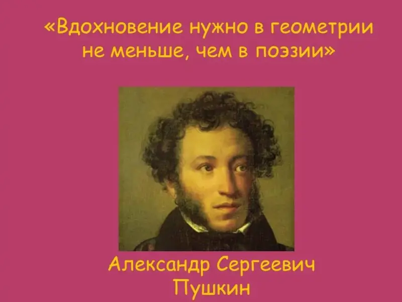 Вопрос 5. Я прочитаю слова известного писателя и поэта.Надо ответить, чьи это слова: «Вдохновение нужно в геометрии не меньше, чем в поэзии». Варианты ответов: Пушкин,