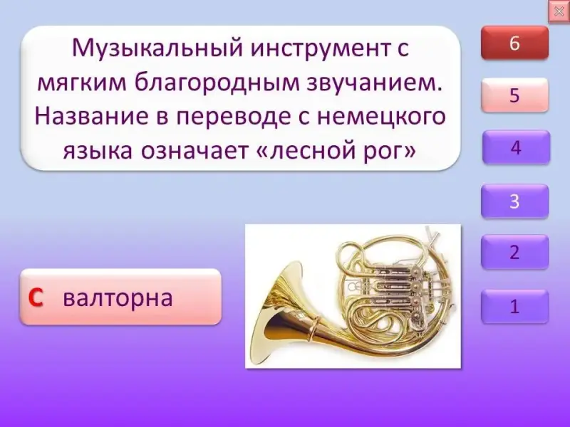 Определение музыкального инструмента по представленной о нём информации |