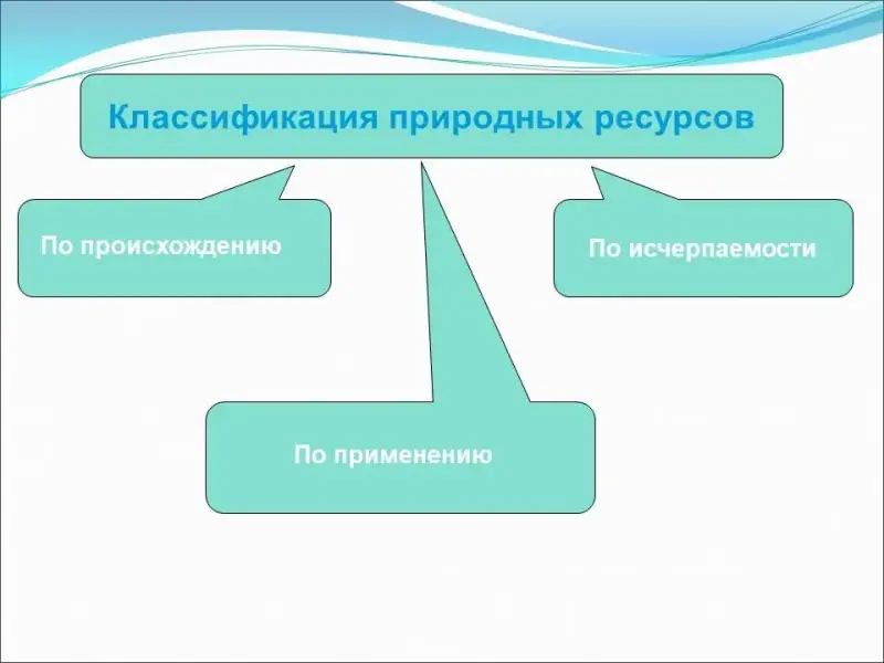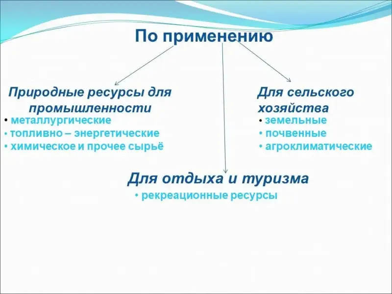 Классификация природных ресурсов: По происхождению, по исчерпаемости, по применению.