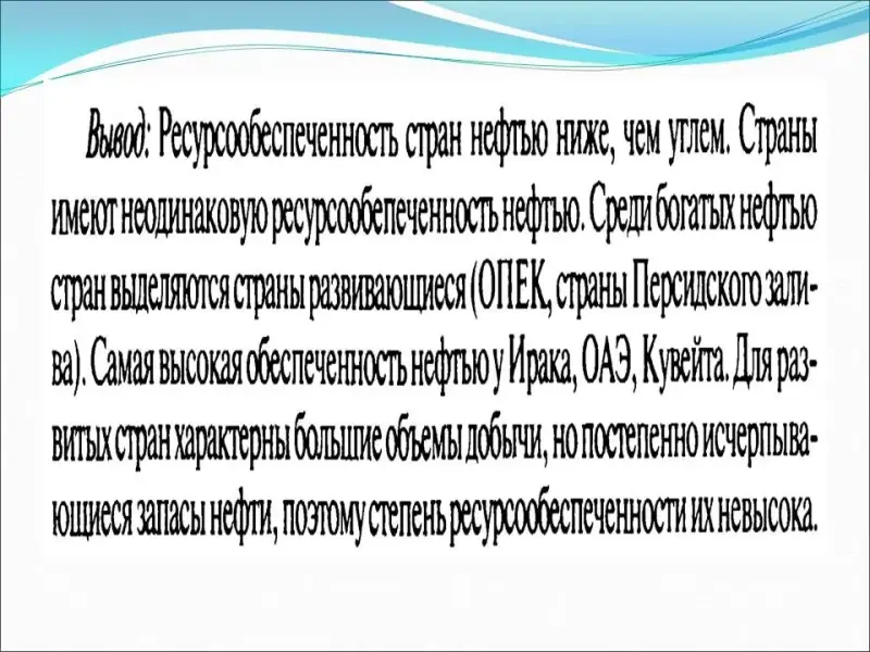 Сделайте выводы о ресурсообеспеченности различны и х стран топливными ресурсами по плану.