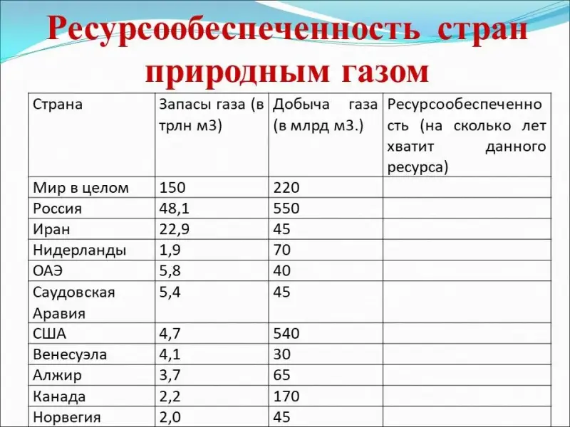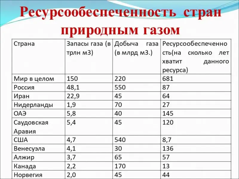 - От чего зависит ресурсообеспеченность стран природным газом?