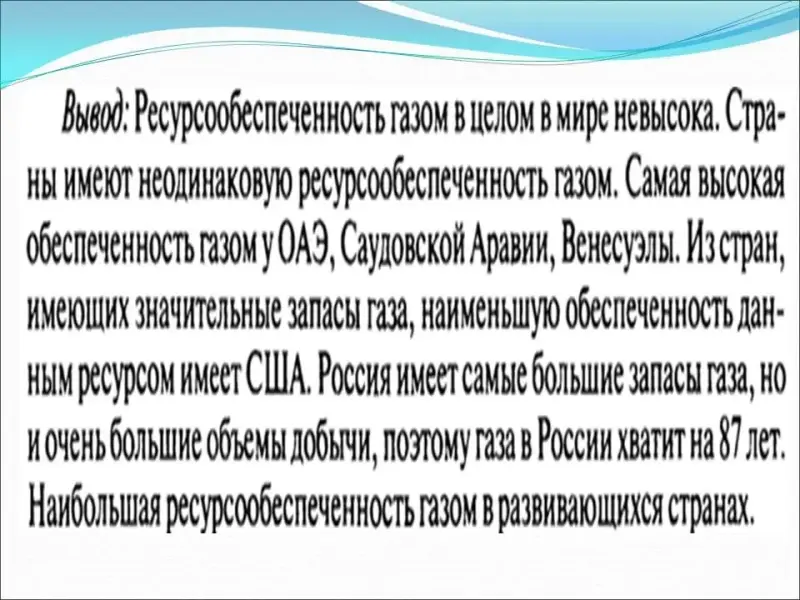 - 5 группа: Расчет ресурсообеспеченности стран природным газом, на какое количество лет хватит данного ресурса.