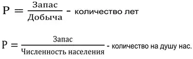 Пример: Р=З/Д - где Р - ресурсообеспеченность природного газа весь мир