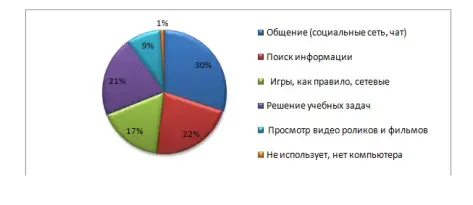 С целью определить для учащиеся применяют средства информационно-коммуникационных технологий был проведен опрос 125 учащихся 9-11 классов ГБОУ Школы № 1394 г. Москвы. Результаты социального опроса «Использование средств информационно-коммуникативных технологий учащимися» представлены на диаграмме (Рисунок 3).