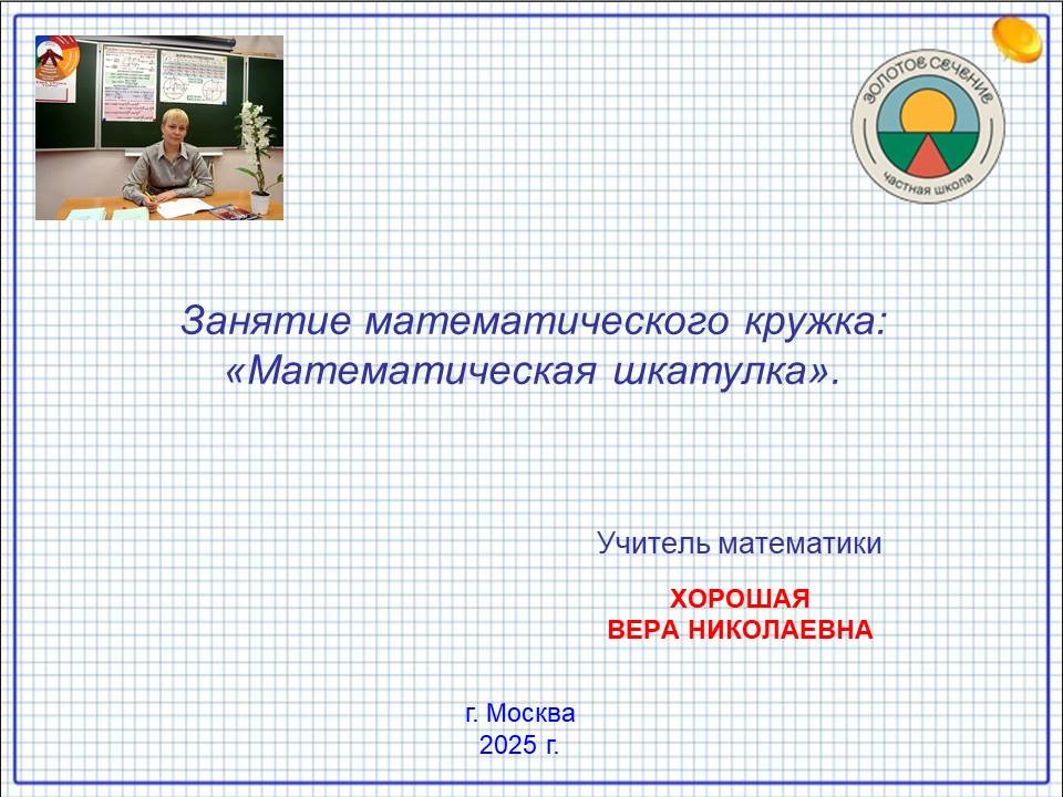 Занятие математического кружка: "Математическая шкатулка"