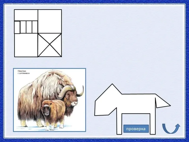 Учитель: Умка предлагает вам собрать детеныша овцебыка из деталей математического конструктора «Монгольская игра».