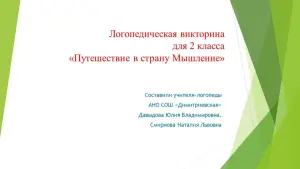 Логопедическая викторина "Путешествие в страну Мышление". 2-й класс