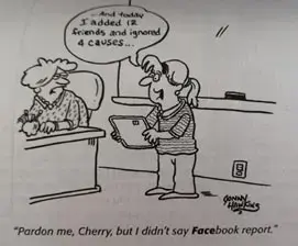 Англичане утверждают, что лучшая возможность для завязывания непринуждённой беседы - это обсуждение погоды. Но, современных школьников интересуют более важные темы. В непринужденной обстановке учащиеся с удовольствием делятся своим мнением по тому или иному вопросу, рассказывают о том, как и чем они живут. Интересные для них темы делают общение комфортным, и непринужденность беседам могут придать карикатуры из календаря. Данная карикатура из календаря может служить отличным поводом обсуждения социальных сетей (Рис. 3).