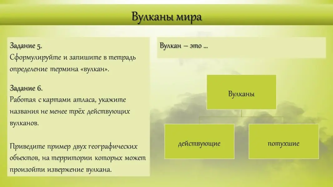 Технологическая карта урока географии в 5-м классе "Вулканы Земли"