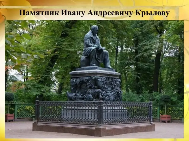 - Знакомство с памятником Крылову в Летнем саду Санкт-Петербурга.