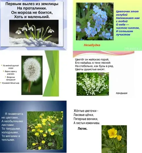 Весной распускаются первые весенние цветы. Назовите, одним словом как можно их назвать? ПЕРВОЦВЕТЫ. Послушайте и отгадайте загадки про первоцветы (проверим ответы на экране.)