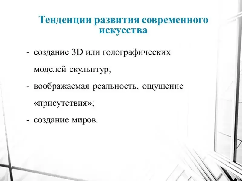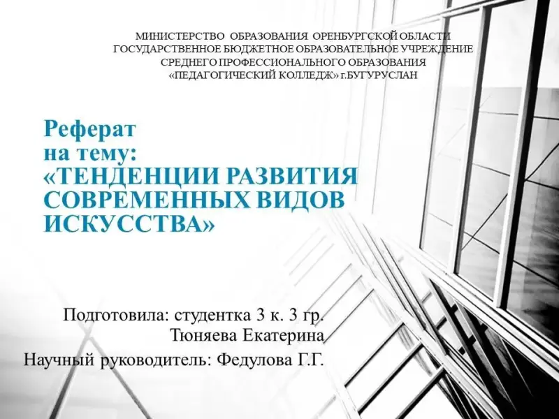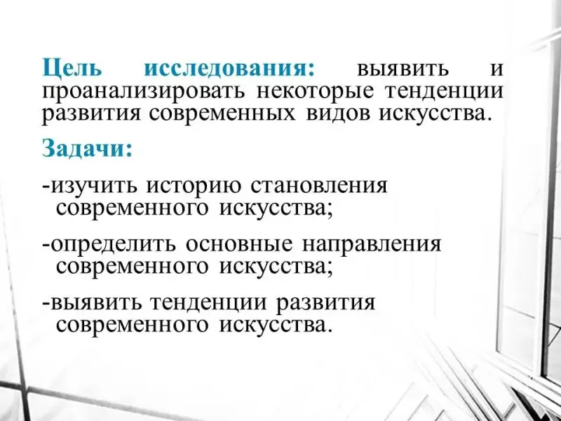 Цель исследования: выявить и проанализировать некоторые тенденции развития современных видов искусства.