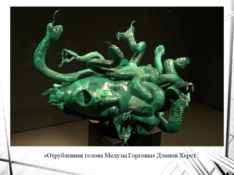 «Сокровища затонувшего «Невероятного» - грандиозная инсталляция: бронзовый Микки-маус, поросший кораллами, нефритовая голова Медузы Горгоны, египетские статуи, греческие доспехи, китайские колокола, боги и герои (Приложение В).