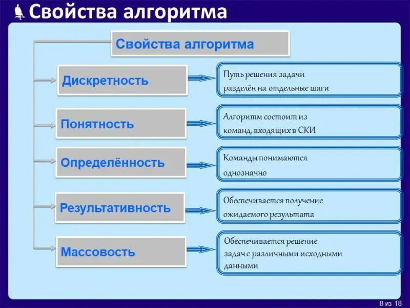- рассмотрение свойств алгоритма;