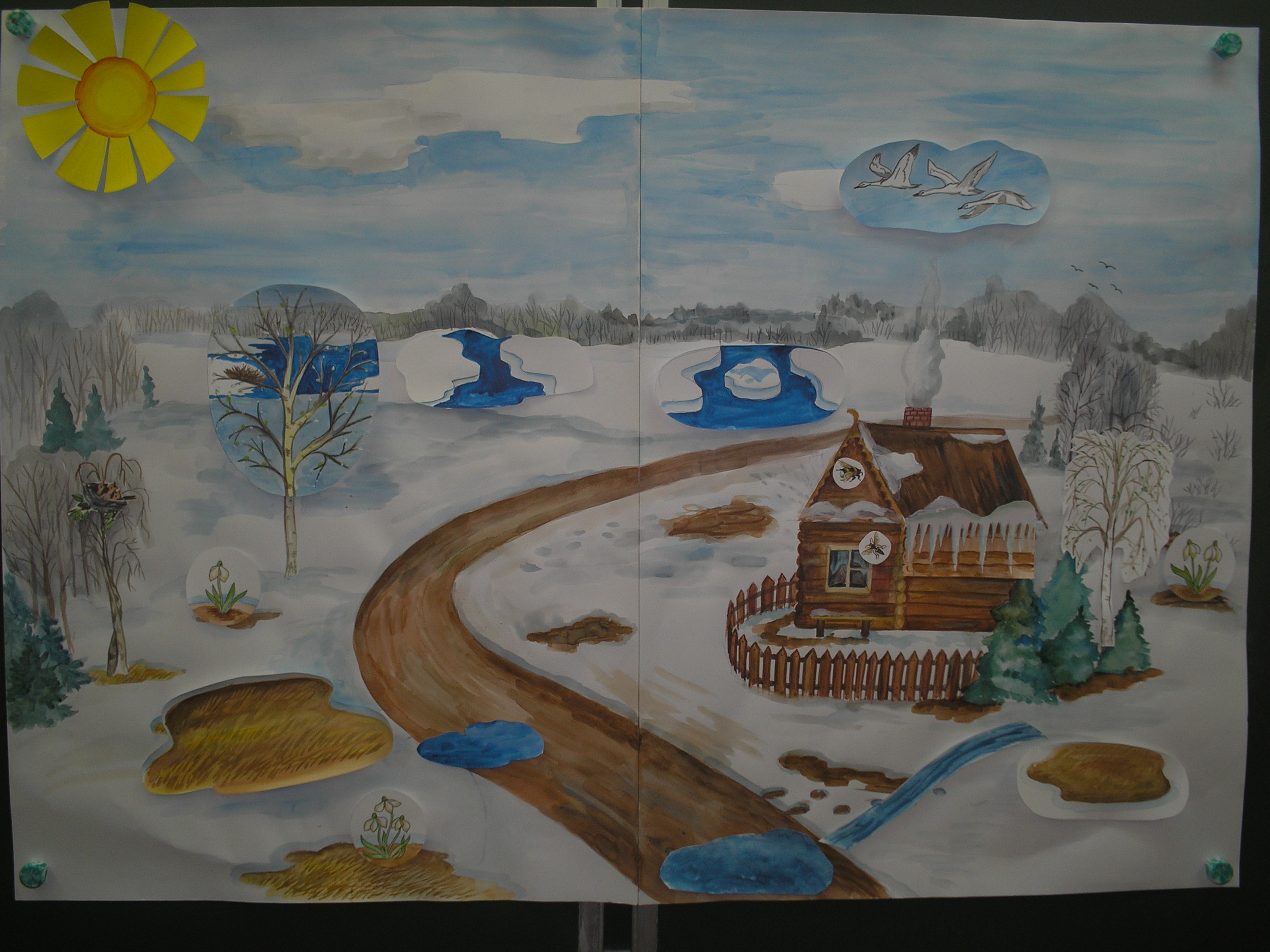 - Закрепить знания детей о признаках весны с учетом климатических условий.