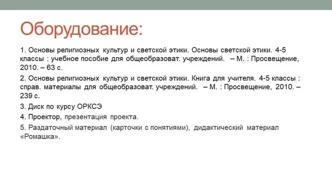- Основы религиозных культур и светской этики. Книга для учителя. 4-5 классы: справ. материалы для общеобразоват. учреждений. - М. : Просвещение, 2010. - 239 с.