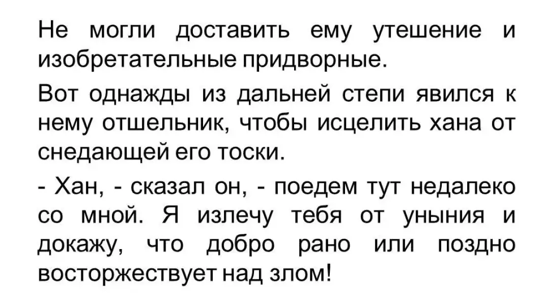 Вот однажды из дальней степи явился к нему отшельник, чтобы исцелить хана от снедающей его тоски.
