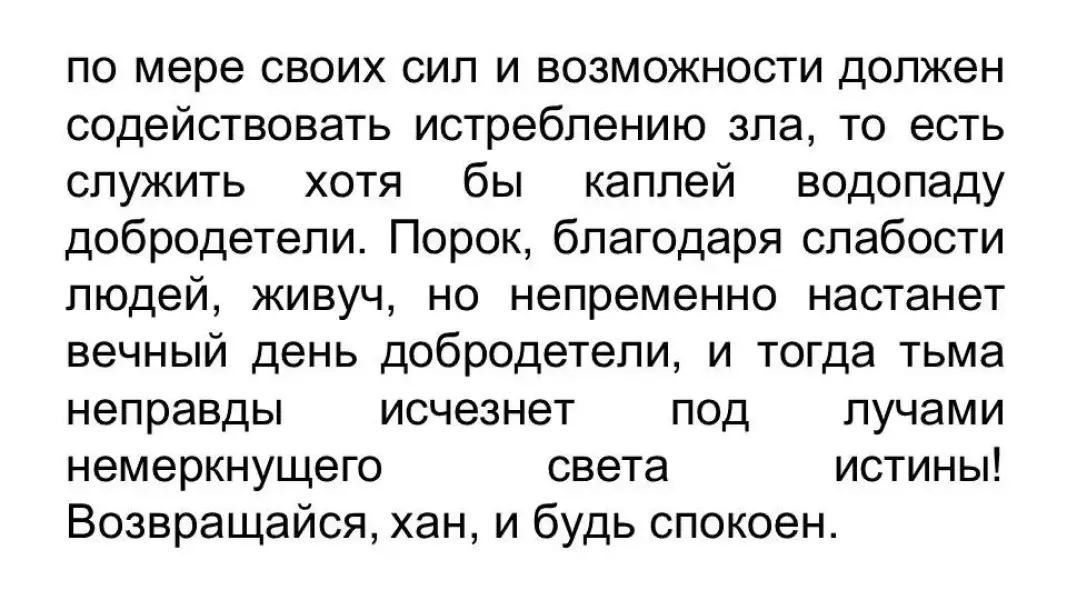 - Хан, - сказал он, - поедем тут недалеко со мной. Я излечу тебя от уныния и докажу, что добро рано или поздно восторжествует над злом!